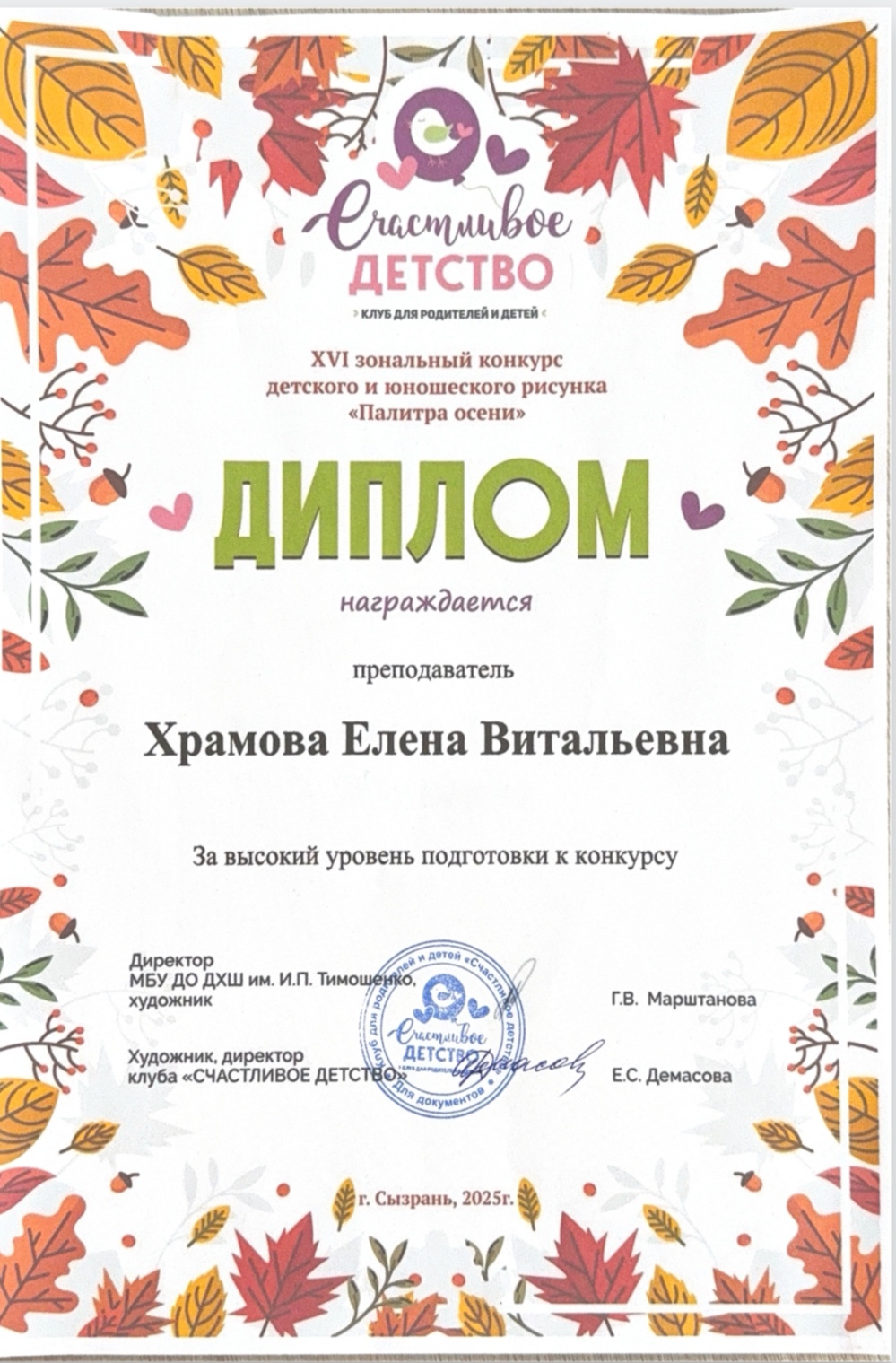 ноябрь 2025 Подготовка обучающихся к участию в XVI Городском конкурсе детского рисунка «Осенняя палитра»